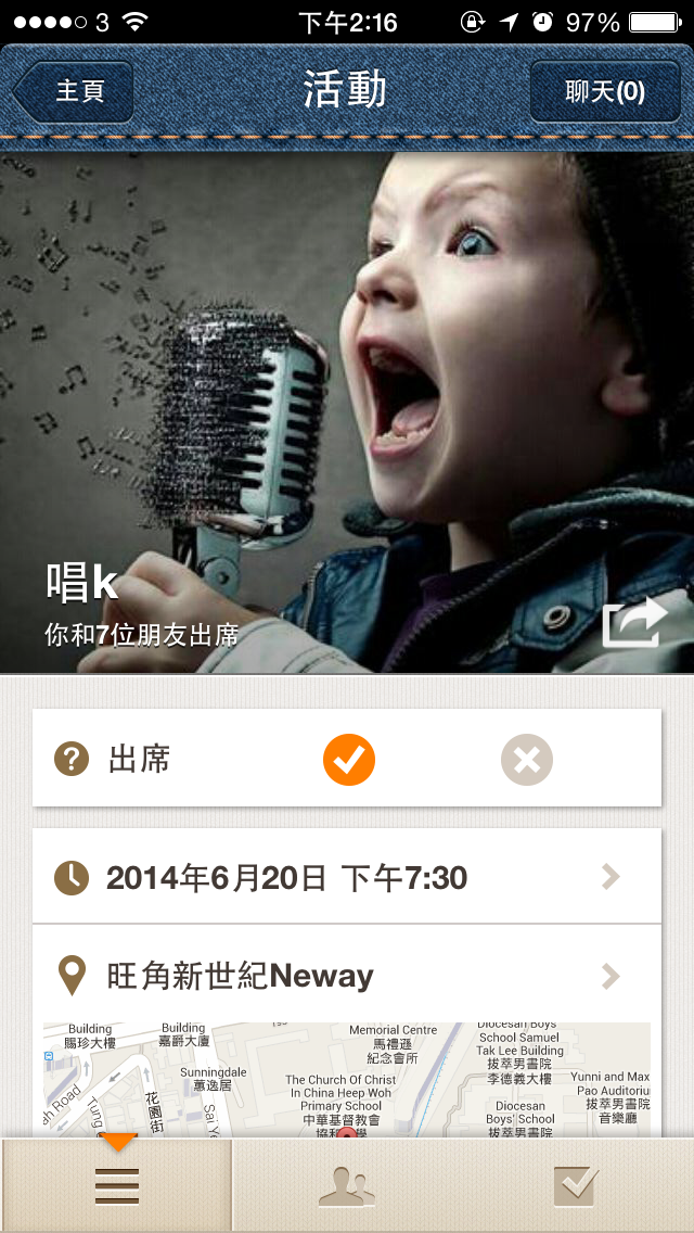 Showup is a brand new social app helps you organize events or activities. Functions like invitation, voting and chatroom boost the communication and you can now invite friends or go to the details together on the fly.